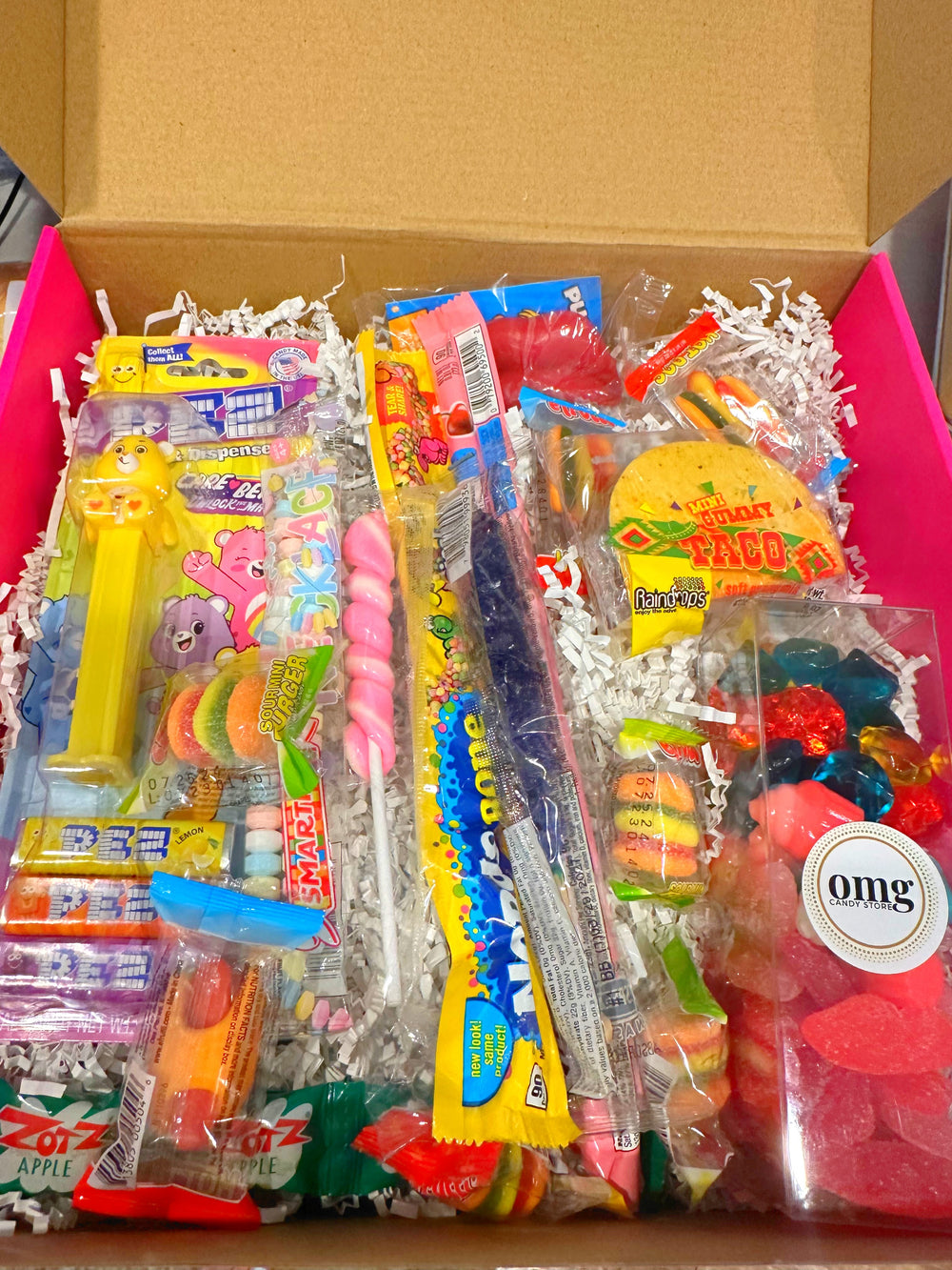 Make them say OMG! Send someone special our OMG box stuffed with yummy goodies. Pez, cotton candy, gummy, sour candy....so many options to tickle the soul of the recipient.