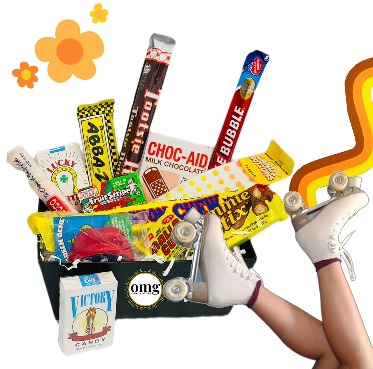 We have a groovy kind of love for this nostalgia box that will make recipients say "OMG!" Filled with all the favs, its overflowing with awesomeness including:
